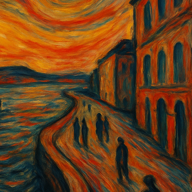 Visuell: Seit 2024 erweitere ich meine Texte durch KI-generierte Bildkompositionen.